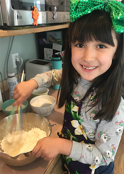 In the coronavirus era, I started baking cakes, pies, and cookies – a hobby I began when I was pregnant with my daughter. Now she’s seven and she bakes with me. With baking you have to get everything just right. Mix too much and the cake is dense. Overwork the pie dough and it’s chewy, not flaky. I show Penny how to pull the knife across the rim of the measuring cup to get exactly the right amount. I wince when she cracks the egg and a bit of shell falls in. She doesn’t want to pour the vanilla into the measuring spoon. My watchful eye is why she won’t try. With baking, I have control through precision. With her, I take control because my nerves are frayed. I can’t stand the uncertainty of the moment and the uncertainty of whether a piece of shell will end up in someone’s cookie. [150]